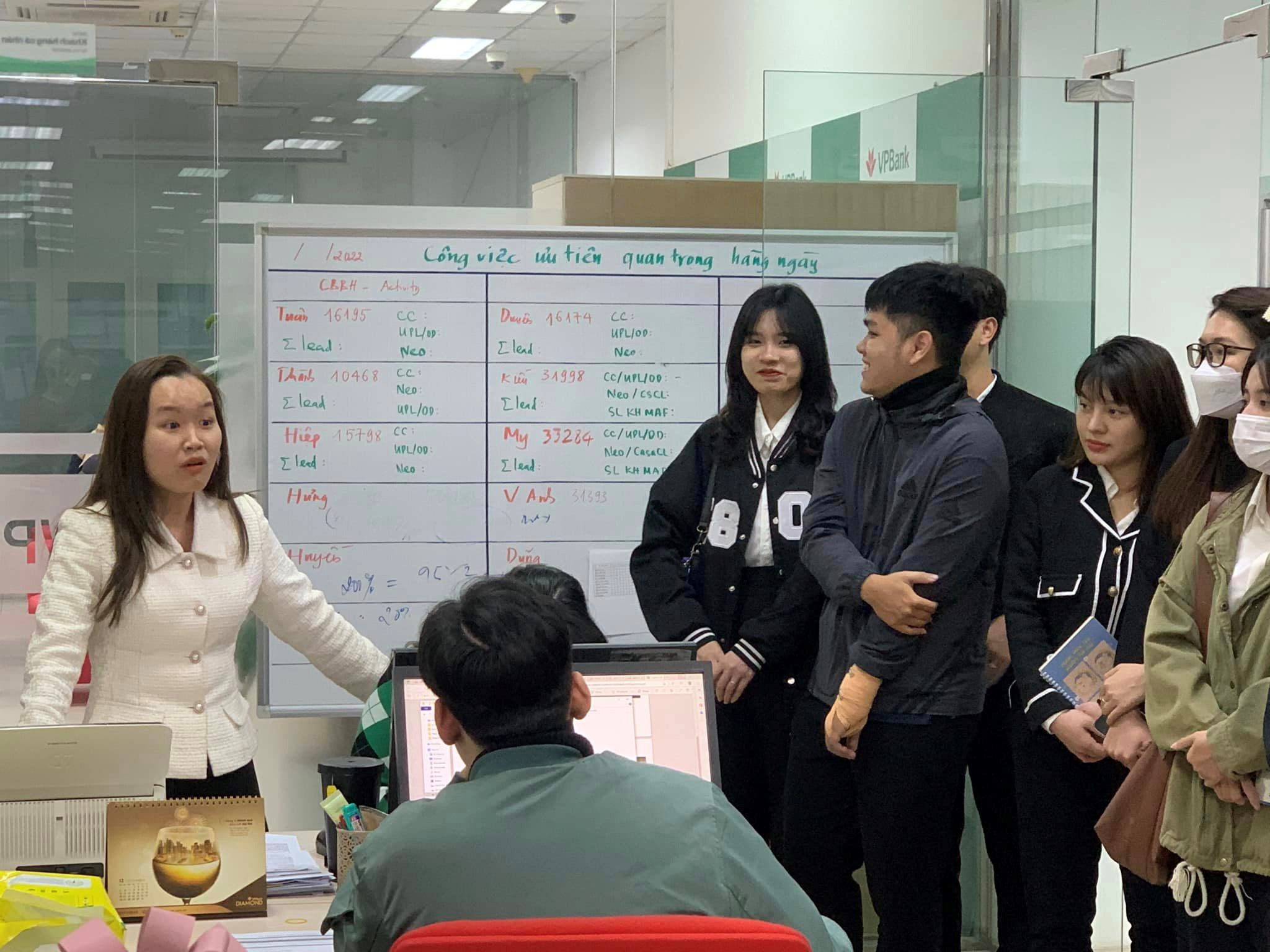 Sau thời gian được lắng nghe chia sẻ, SV ngân hàng đã trực tiếp trải nghiệm sử dụng dịch vụ ngân hàng VPbank thông qua kênh bán hàng điện tử.