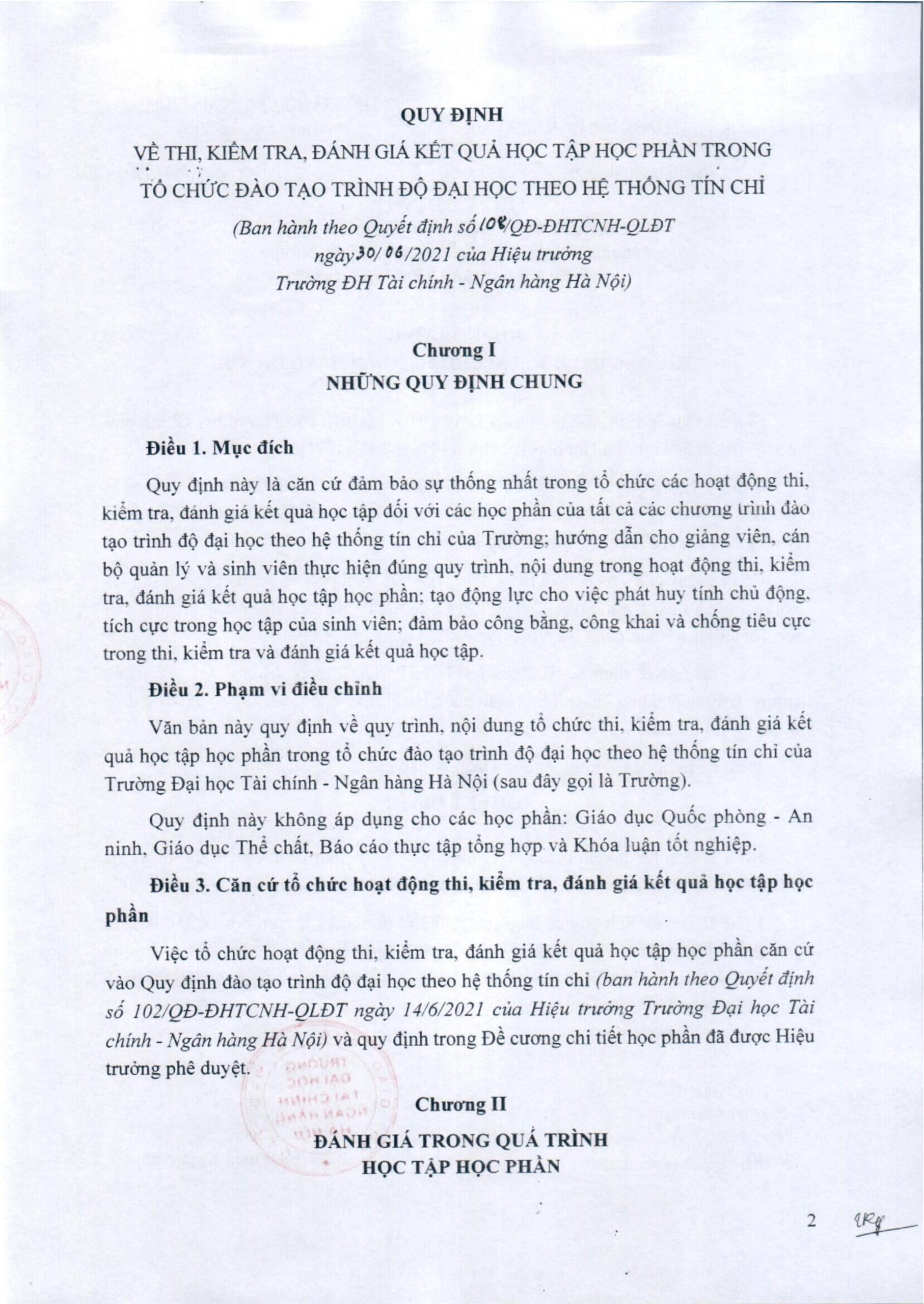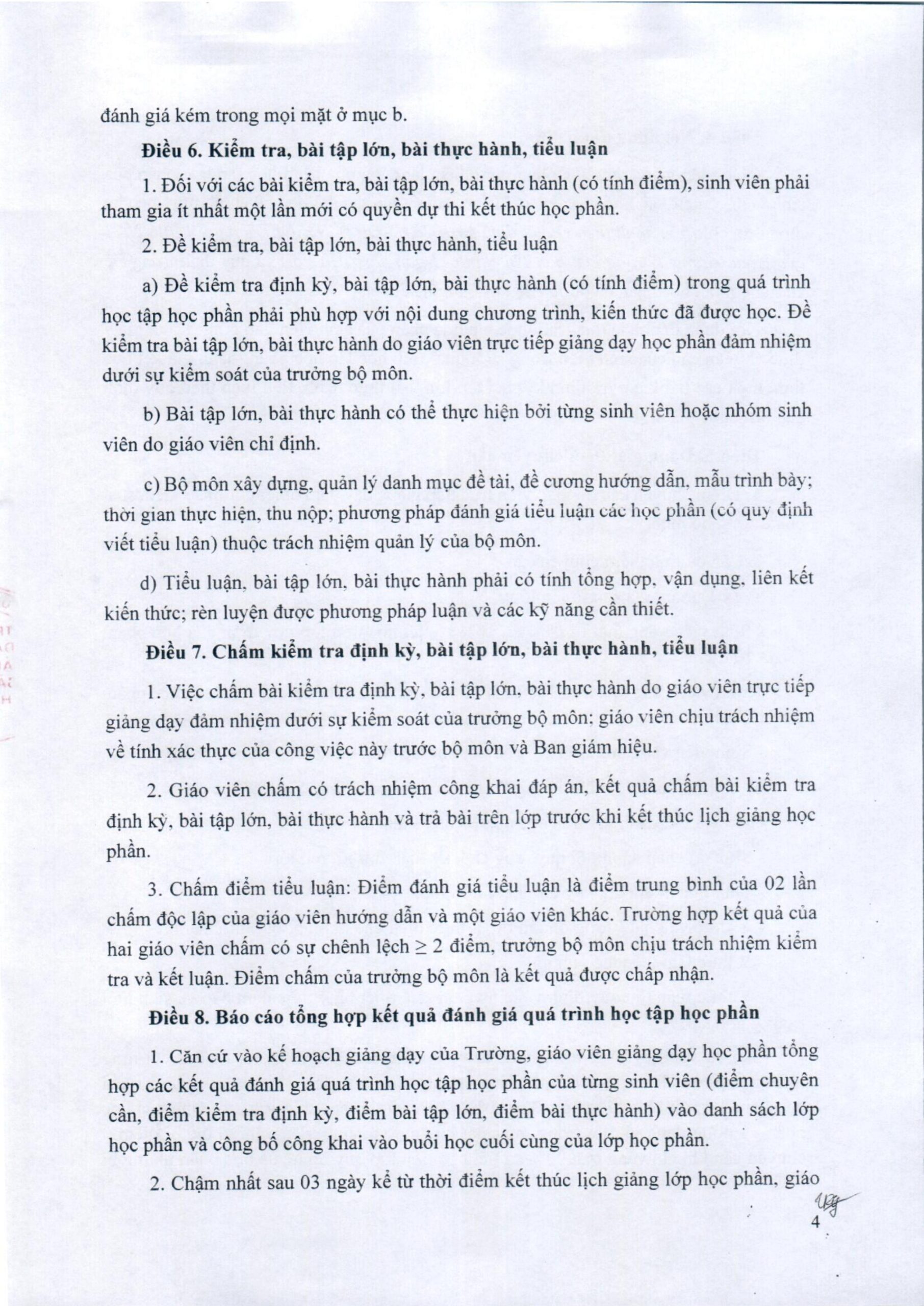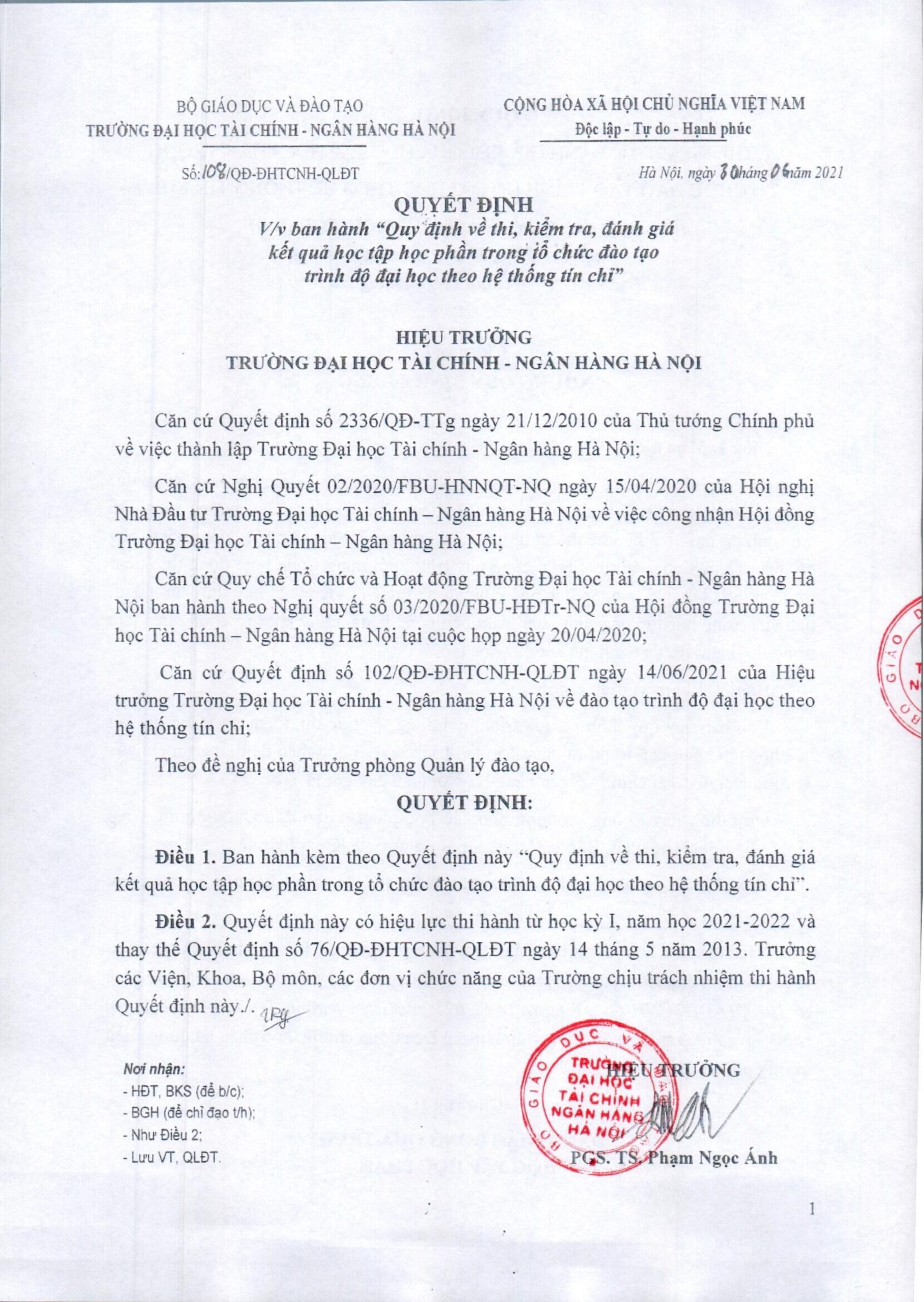 QUYẾT ĐỊNH SỐ 108 V/v BAN HÀNH “QUY ĐỊNH VỀ THI, KIỂM TRA, ĐÁNH GIÁ KẾT QUẢ HỌC TẬP HỌC PHẦN TRONG TỔ CHỨC ĐÀO TẠO TRÌNH ĐỘ ĐH THEO HỆ THỐNG TÍN CHỈ”