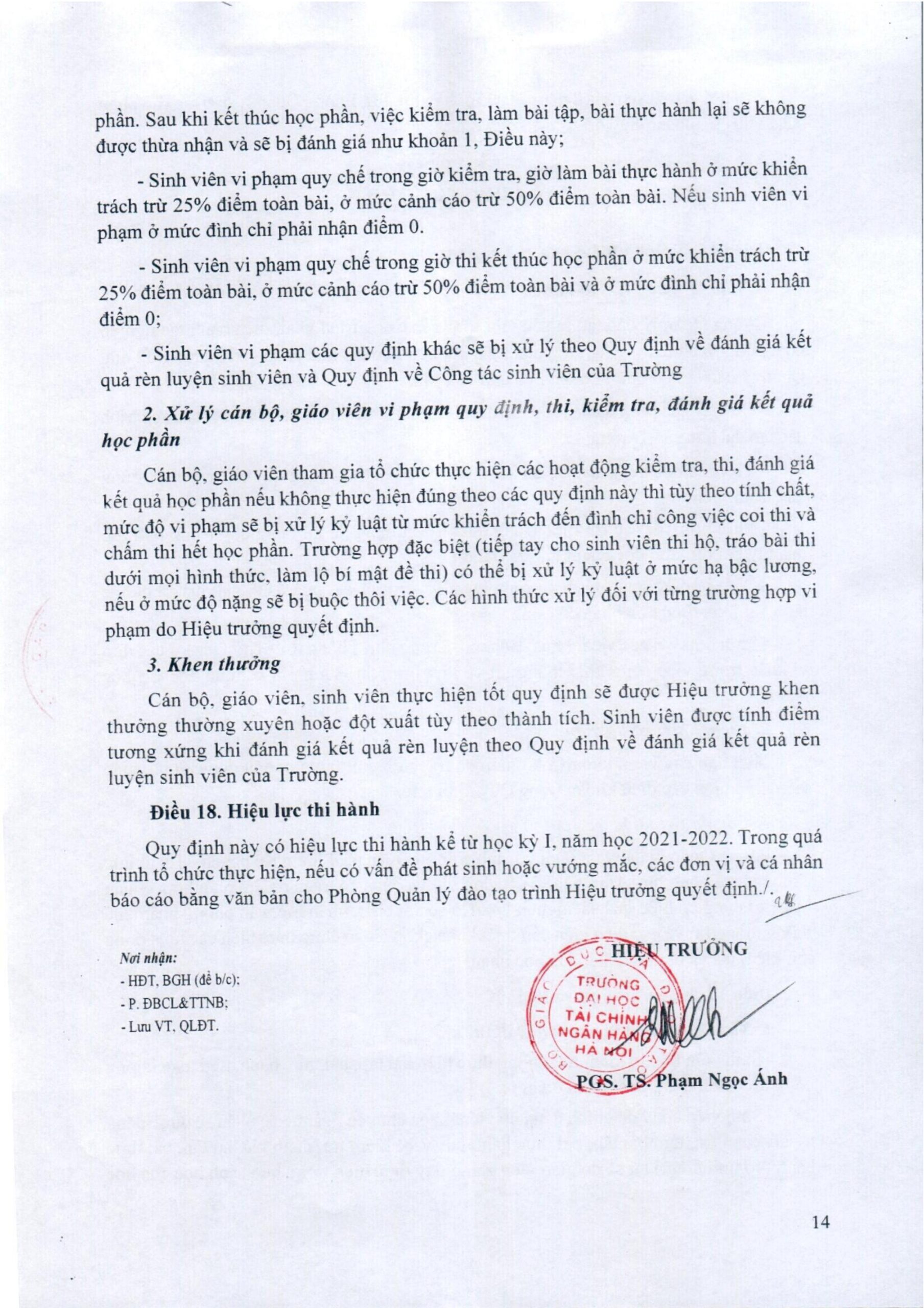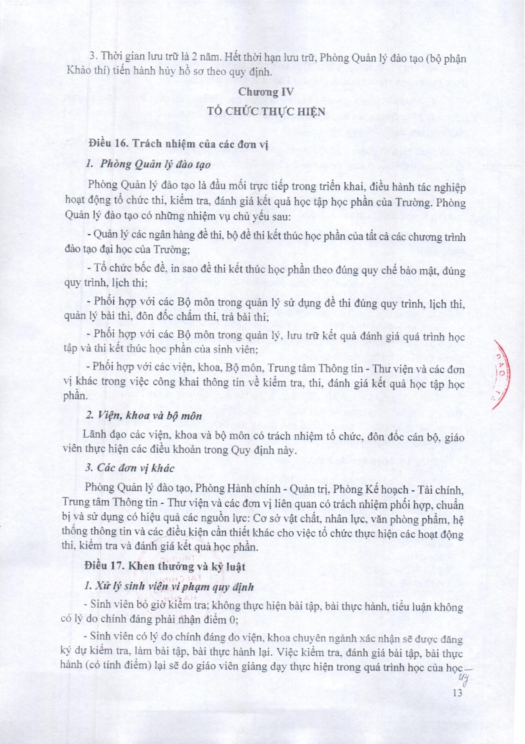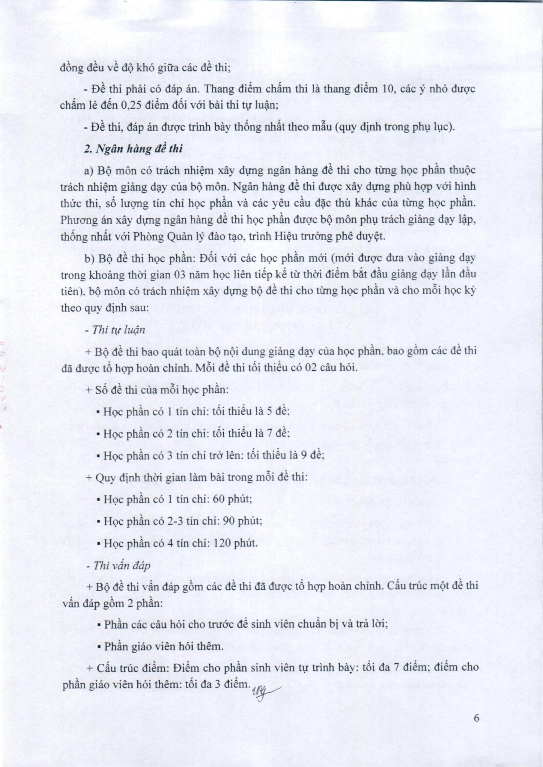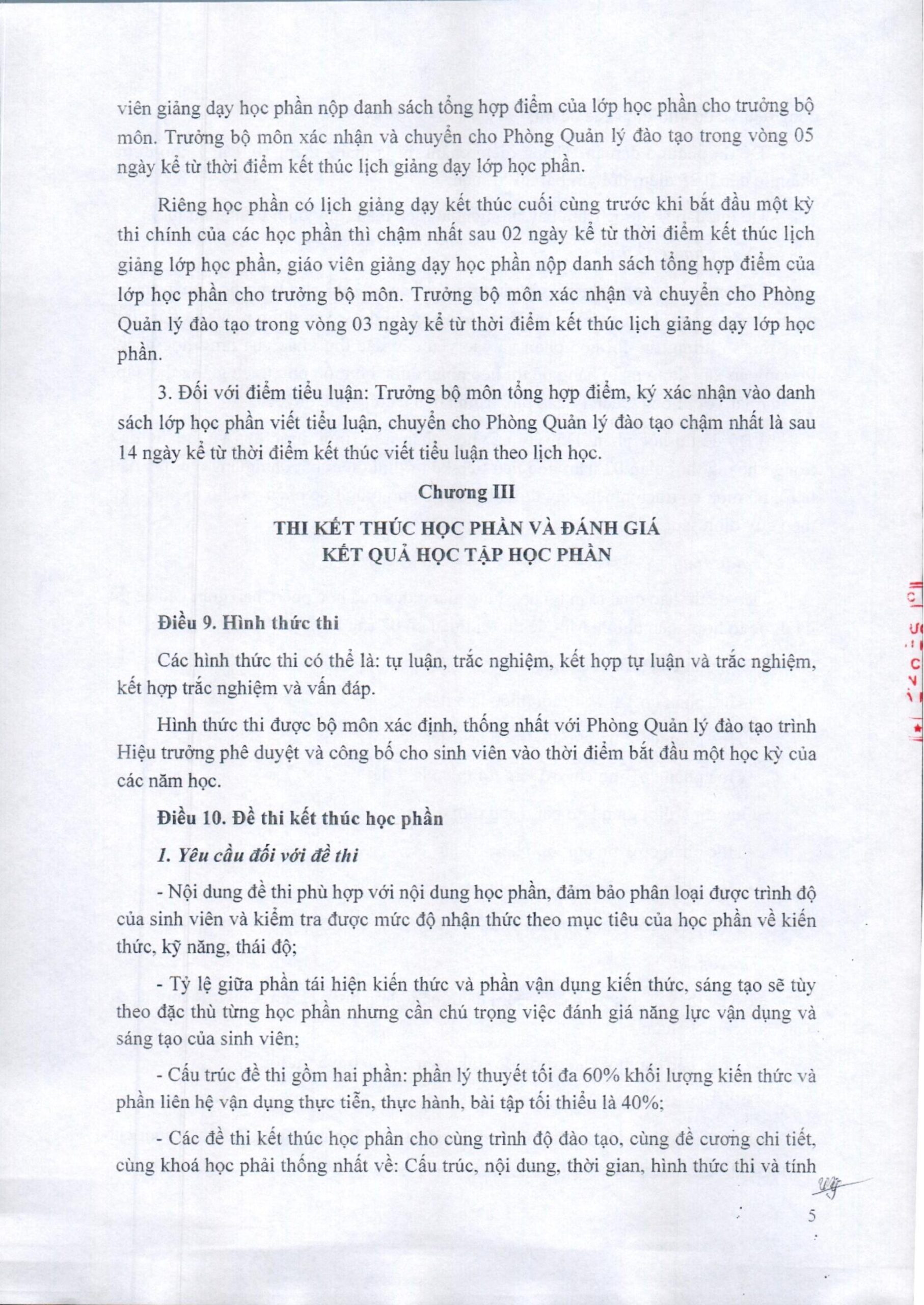 QUYẾT ĐỊNH SỐ 108 V/v BAN HÀNH “QUY ĐỊNH VỀ THI, KIỂM TRA, ĐÁNH GIÁ KẾT QUẢ HỌC TẬP HỌC PHẦN TRONG TỔ CHỨC ĐÀO TẠO TRÌNH ĐỘ ĐH THEO HỆ THỐNG TÍN CHỈ”